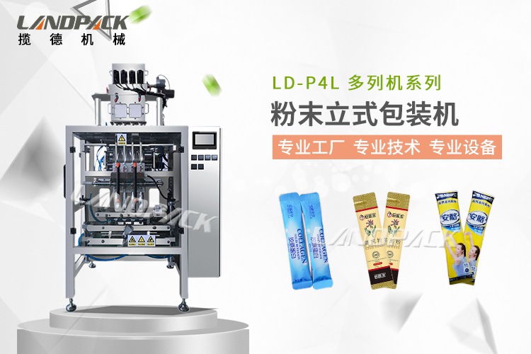 攬德LD-420D/520D/720D粉末包裝機可以完成計量、充填等工作,適用于計量那些易流動或流動性差的粉粒物料;如奶粉、蛋白粉、面粉、固體飲料、可可粉、雞粉、白砂糖、食品添加劑、飲料、醫藥原料、染料、香精香料等。包裝的款式多樣化,背封、插角、連袋,沖孔等。